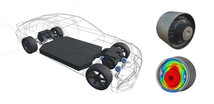 • EV 마운트 설계 개념 : 저주파수대역에서 고댐핑을 통한 진동감쇠 및 중,고주파수 대역에서 저동배율을 통한 진동전달 절연이 가능한 고무소재 적용 및 최적형상 설계